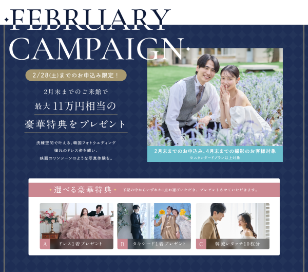 今、注目を集める韓国フォト。映画クオリティのスタジオや、美しさを追求するレタッチ技術は世界でも類を見ないほど。動きを感じるポージングやナチュラルなヘアメイクもその特徴です。おふたりの幸せを世界観たっぷりに描きます。