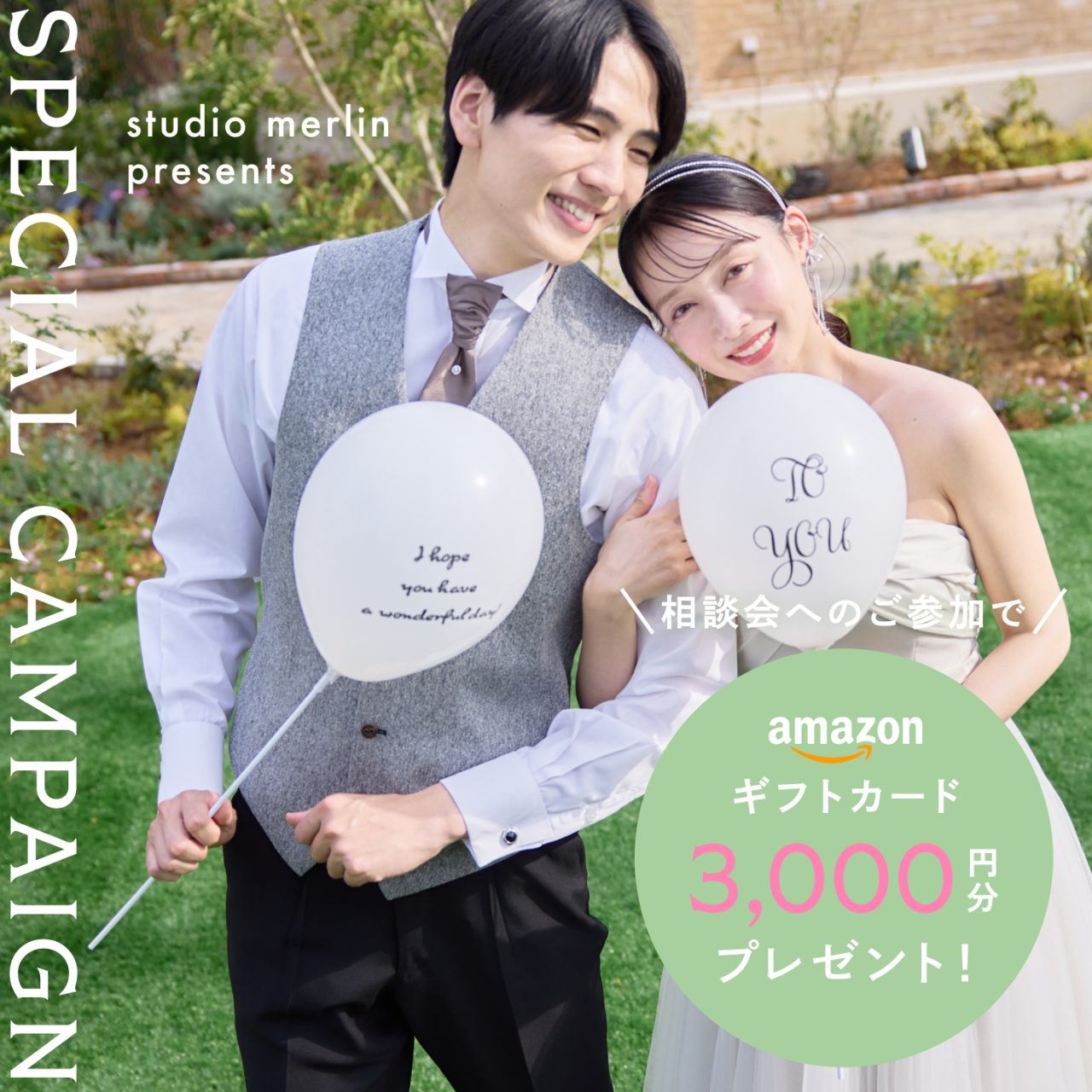 フォトウエディングや韓国フォトにご興味のある方へ、この冬だけの嬉しいキャンペーン。2月中にご相談会へ参加された方全員に、Amazonギフト券3,000円分をプレゼントいたします。大聖堂での憧れの一枚や、ガーデンでの自然なショット、韓国フォトならではの洗練された仕上がりまで、おふたりの理想に合わせた撮影をご提案。実際に会場やスタジオをご見学いただきながら、撮影のイメージをふくらませていただけます。ぜひこの機会にお気軽にご来館ください。