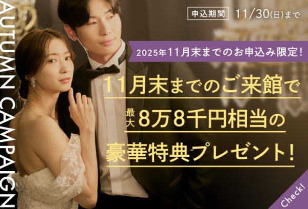 【AUTUMN キャンペーン】憧れのドレス姿を叶える!最大8万8千円相当の豪華特典をプレゼント!