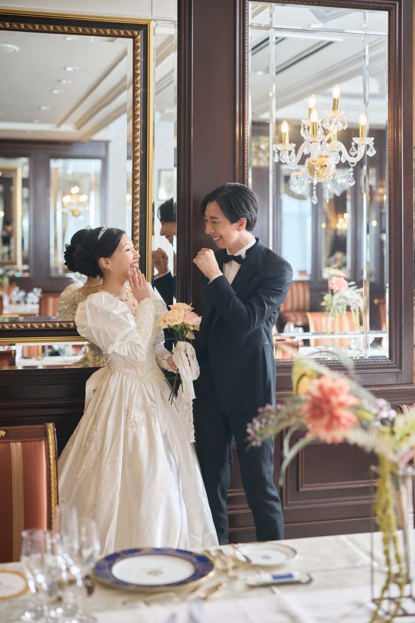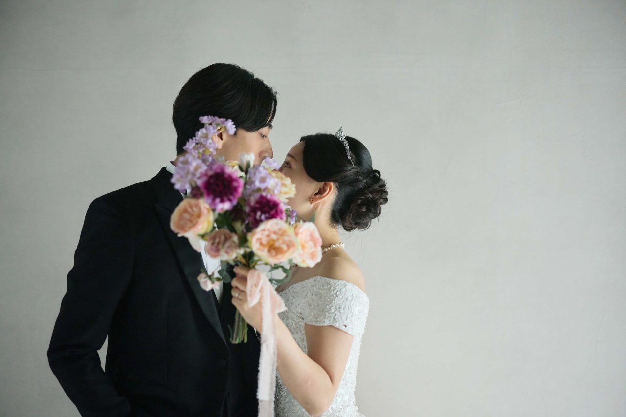 アンニュイな表情でも、満面のにっこり笑顔でもお2人のそのままを残せるシンプルな背景。